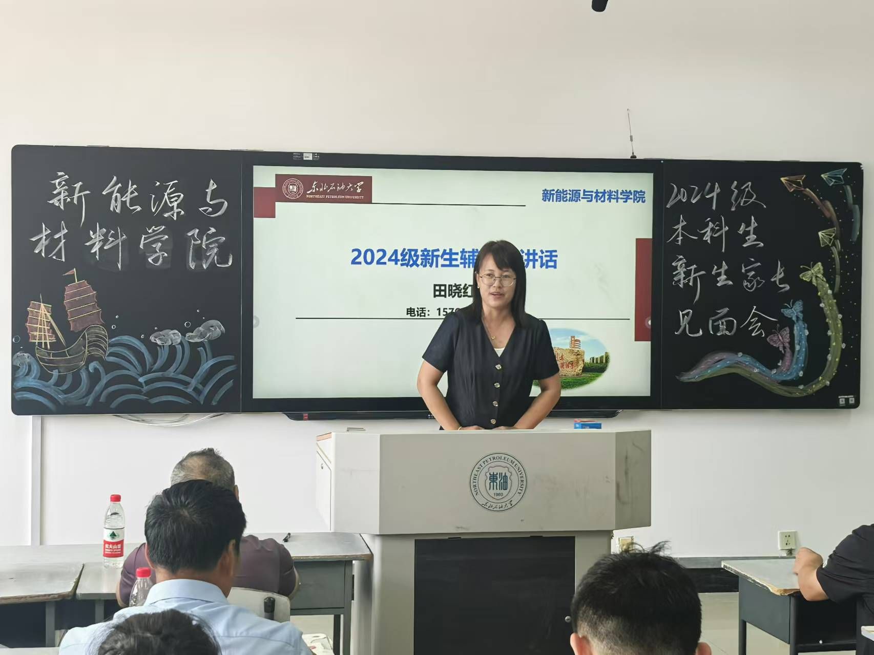 公司新生辅导员田晓红说明了辅导员在员工管理、思想教育、学业指导等方面的职责,表达了与家长们携手共育英才的美好愿景。