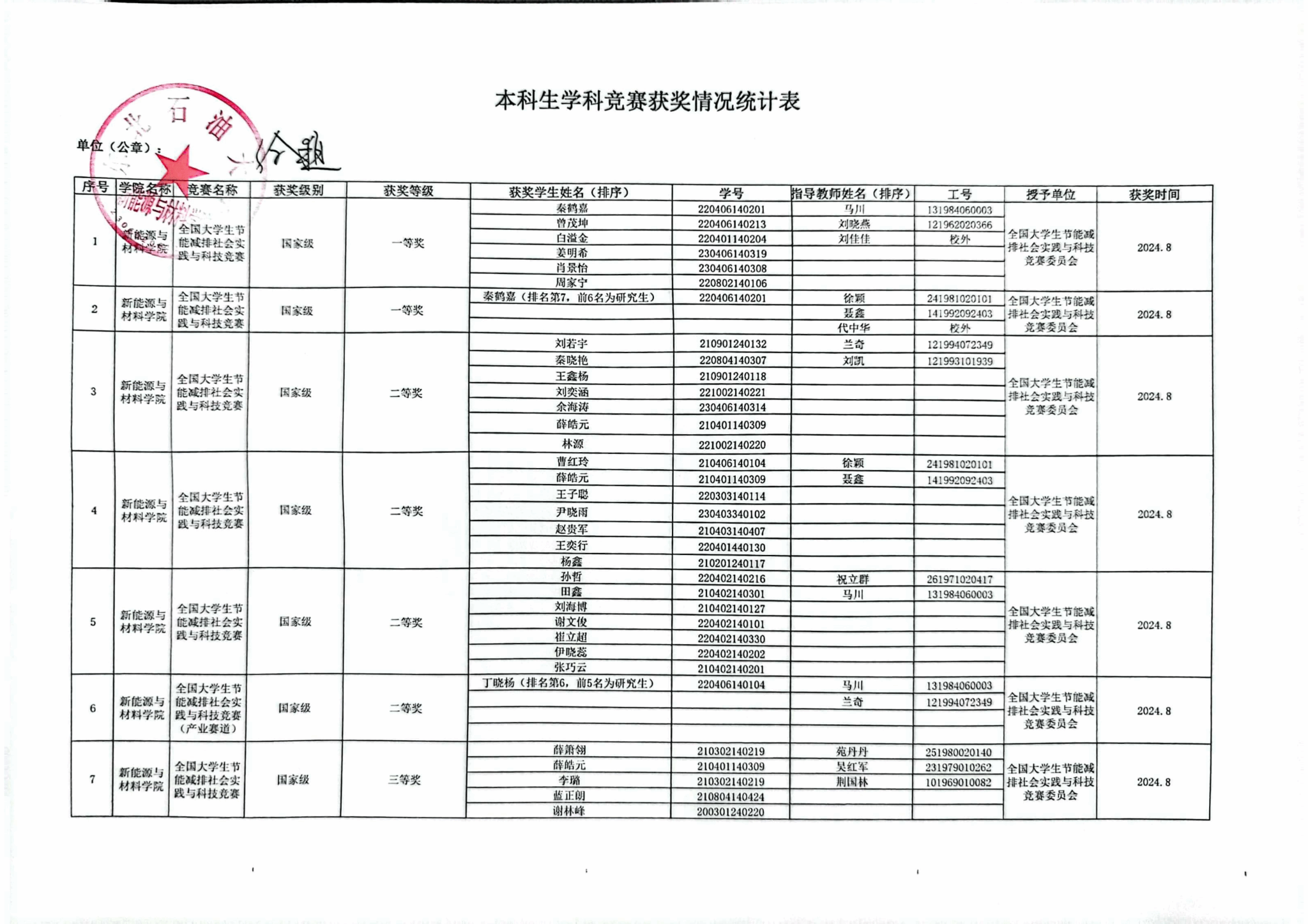 根据“关于做好2024年度xcsports本科生学科竞赛统计通知”的要求,现将公司2024年组织的学科竞赛暨“xcsports第一届老员工节能减排社会实践与科技竞赛”获奖结果公示如下,公示期3天。期间如有异议请联系新能材教学办公室崔静怡,电话13578508269。